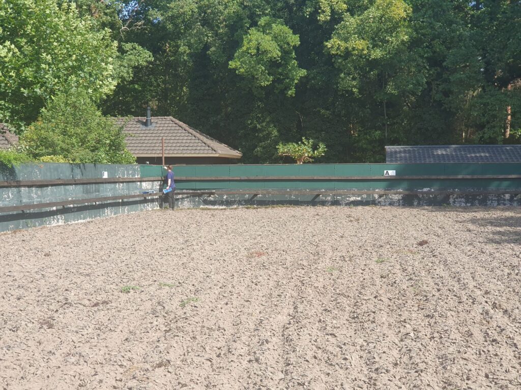 - Je kunt de trailer via het bospad voor de rijbak parkeren, zodat je in alle rust je paard uit kan laden