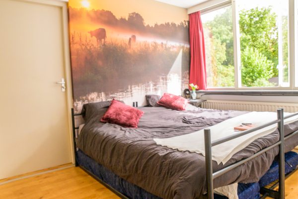 • Beneden: twee tweepersoonskamers en een 3e op komst. Deze kamers delen een gezamenlijke badkamer en gezamenlijk toilet.