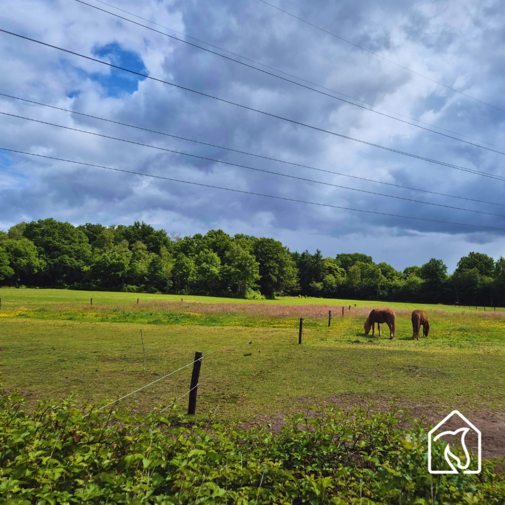 - 10 minuutje stappen langs een weg (waar je naast het paard ook goed kunt fietsen) en je bereikt de eerste ruiterroute