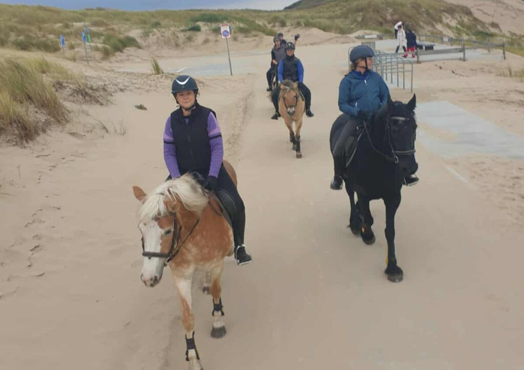 Ook dat kan! Stap het erf af en je rijdt tussen de bollenvelden door tot aan het strand van Den Helder. Het strand in Den Helder is breed en rustig. Ideaal voor lange buitenritten, galopsessies of gewoon lekker genieten van de zon en de zee.