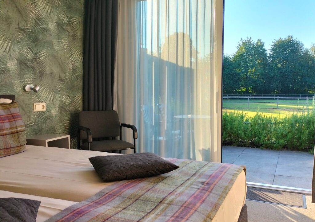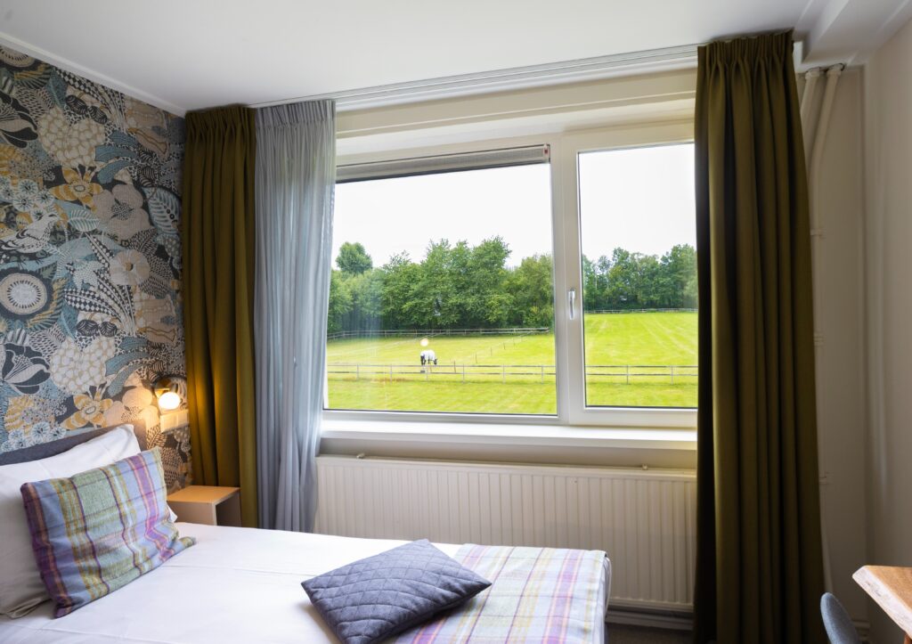 Het hotel zelf is comfortabel en sfeervol. De kamers zijn ruim, netjes en stijlvol ingericht. Sommige kamers kijken uit op de stallen of de weilanden, waardoor je het gevoel hebt dat je altijd dichtbij je paard bent. Alles is aanwezig: fijne bedden, een nette badkamer, en beneden een huiselijke sfeer. Of je nu één nacht blijft of een heel weekend, je komt hier echt even los van de dagelijkse drukte.