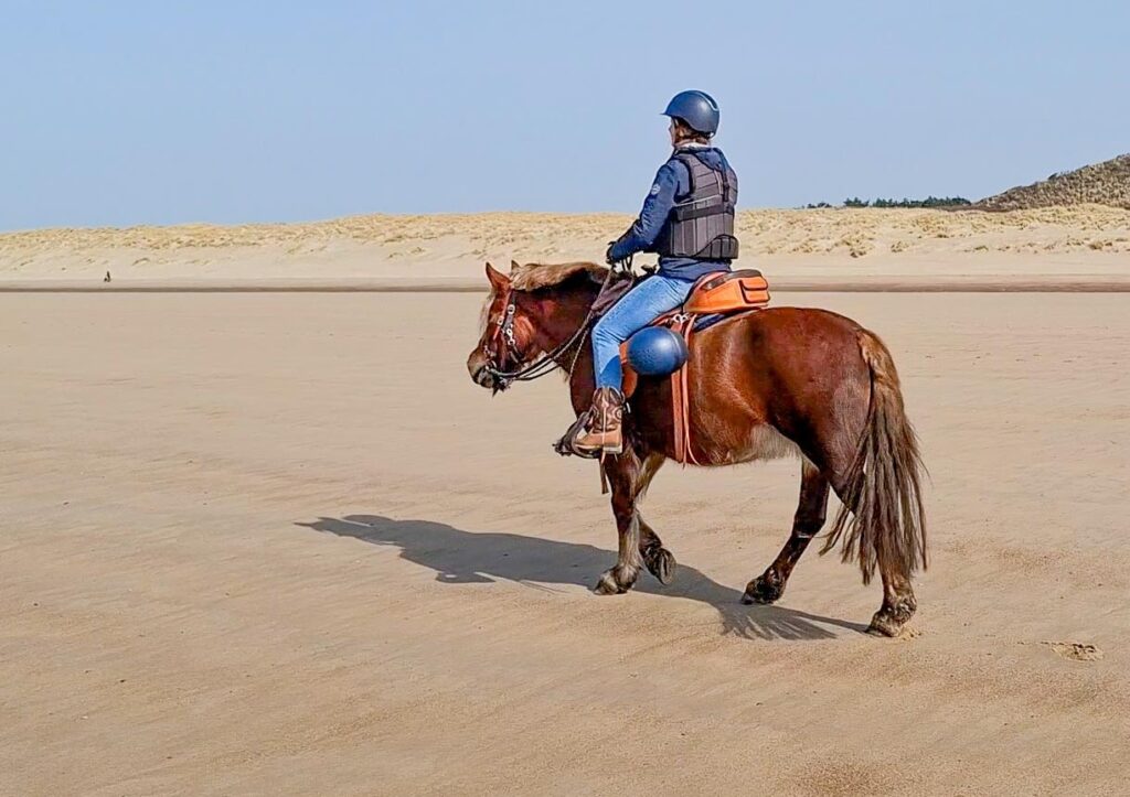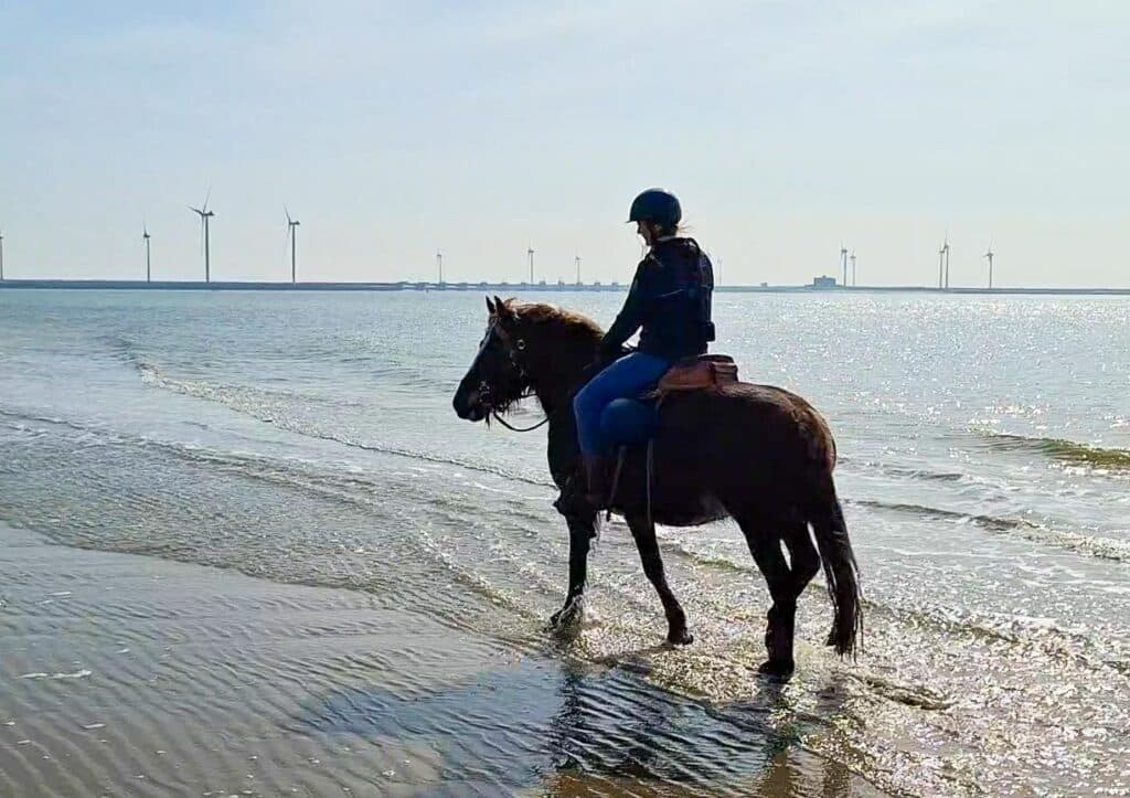 Voordat ik Lot kocht ben ik al heel vaak in Zeeland geweest. Veel weekenden en vakanties heb ik hier doorgebracht. Ik heb ook vaak paardgereden op het strand, op allerlei paarden. Van trekpaard tot IJslander. Inmiddels ken ik al aardig wat hotspots in Zeeland dus dat voelt voor mij vertrouwd. Dus Zeeland was voor mij een logische stap. Zeeland voelt voor mij als thuiskomen. En dan nu thuiskomen met mijn eigen paard.