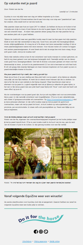 Alle abonnees van Equizine hebben onderstaande mailing ontvangen. Daarnaast ben ik ook op Equiday aanwezig geweest en heb hierover een blog geschreven